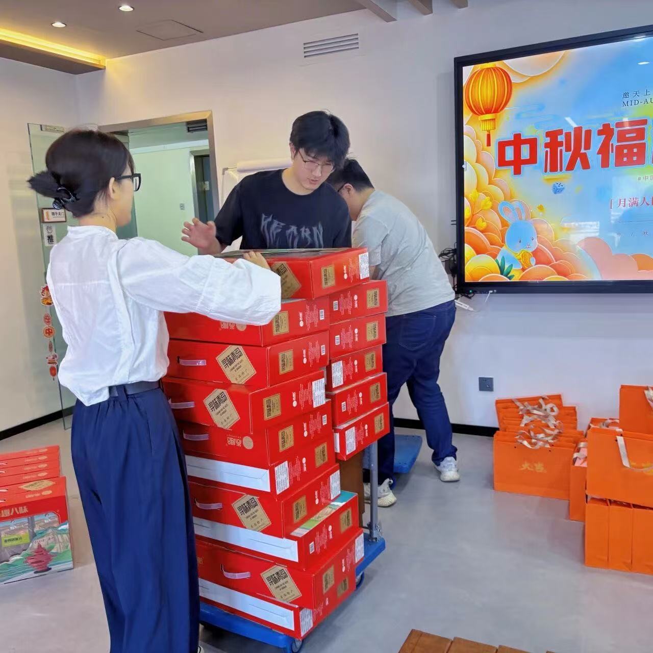一箱箱承载着关怀与期待的礼物,终于在这一天,满载心意,如期抵达。发放现场早已洋溢着一片欢欣与温暖,笑语不断。每一份递到手中的礼物,不仅伴随着一声“中秋快乐”,更传递着一份真挚的问候;每一次双手的交接,都是一次情感的连接,仿佛在说:“辛苦了,愿你与家人共度美好时光。”